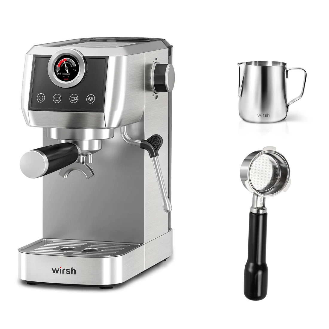 Wirsh 20 Bar Espresso Machine with Plastic Free Portafitler and Steamer, Pressure Gauge, Touch Screen, Full Stainless Steel (Home Barista Plus)