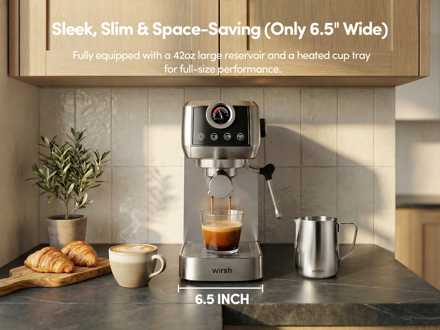 Wirsh 20 Bar Espresso Machine with Plastic Free Portafitler and Steamer, Pressure Gauge, Touch Screen, Full Stainless Steel (Home Barista Plus)